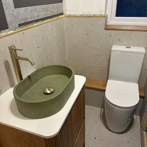 The basin is so well made and beautifully finished. Delivery was quick and it was very well packaged. The colour really is as rich as in the photos and it is the most eye catching feature of our new bathroom. We chose to compliment it with a high quality tap and waste from Ideal Standard.