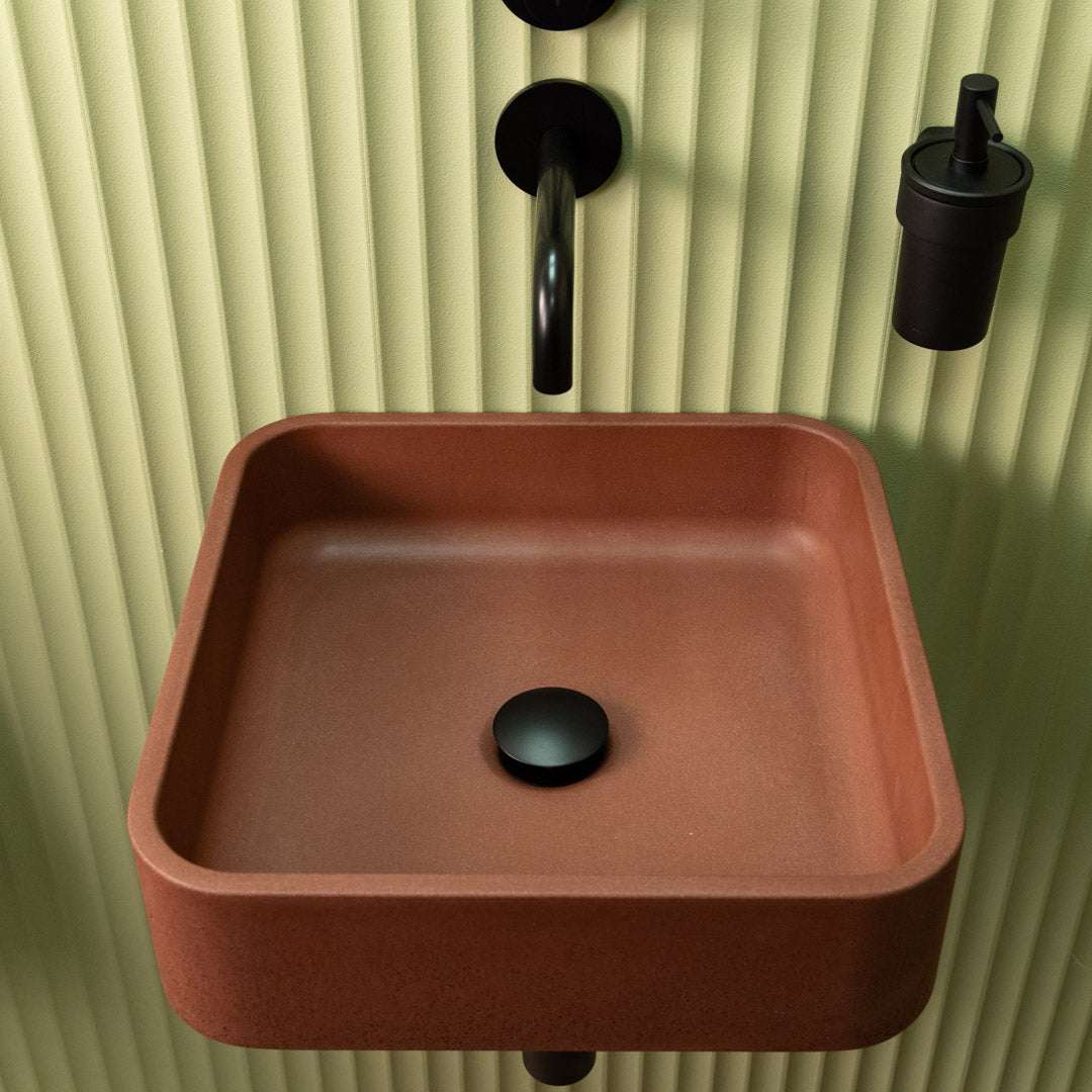 Handgefertigt aus hochwertigem Beton präsentiert sich das Boxy Basin mit einem klaren, quadratischen Design, das modernen Badezimmern Struktur und Ausgewogenheit verleiht. Seine glatte, matte Oberfläche und präzisen Linien machen es zur idealen Wahl für zeitgenössische oder industrielle Innenräume. Jedes Waschbecken ist ein Unikat, mit subtilen Variationen in Farbton und Textur, die seinen handgefertigten Charakter unterstreichen. Für eine einfache Montage auf der Arbeitsplatte konzipiert, bietet es sowohl Langlebigkeit als auch zurückhaltenden Stil.