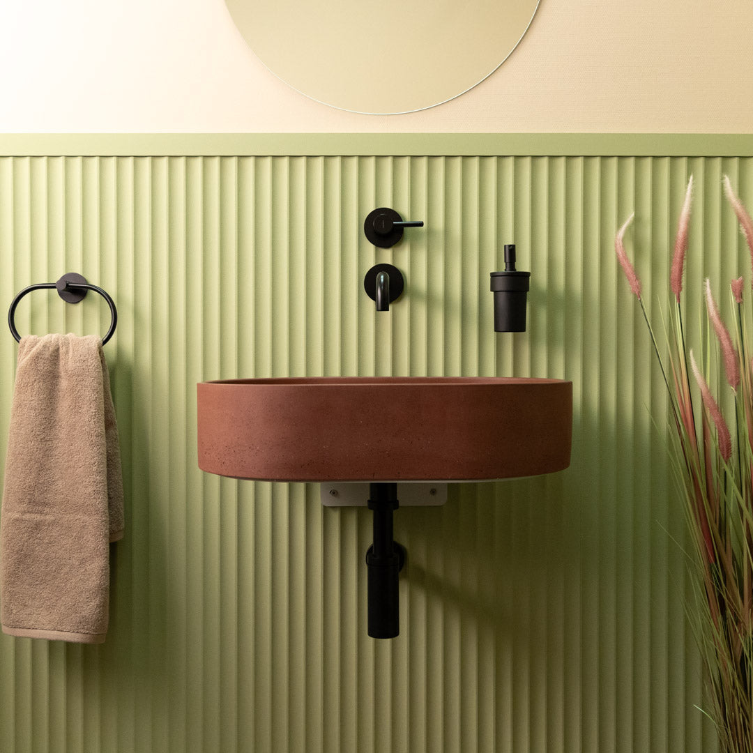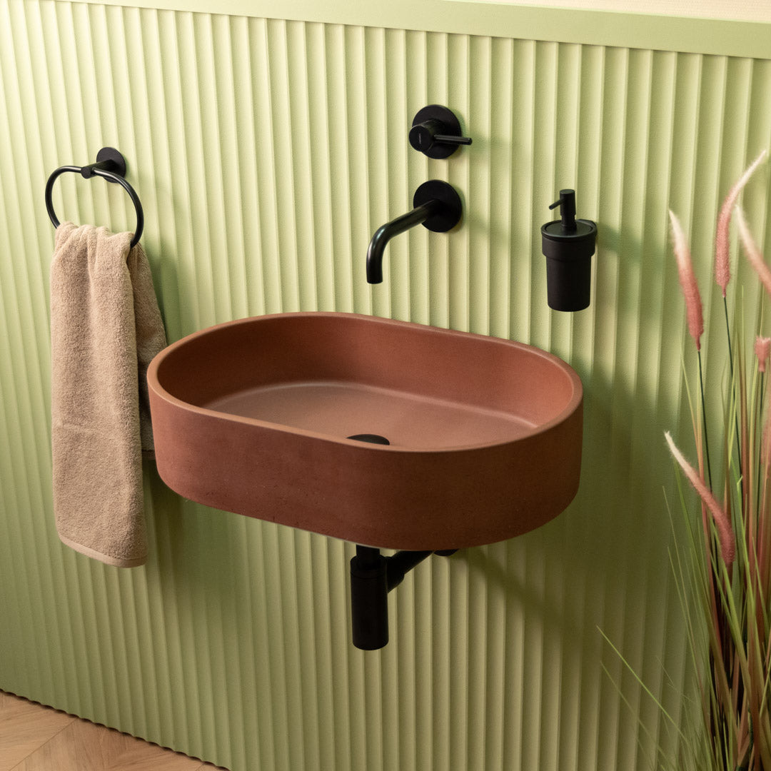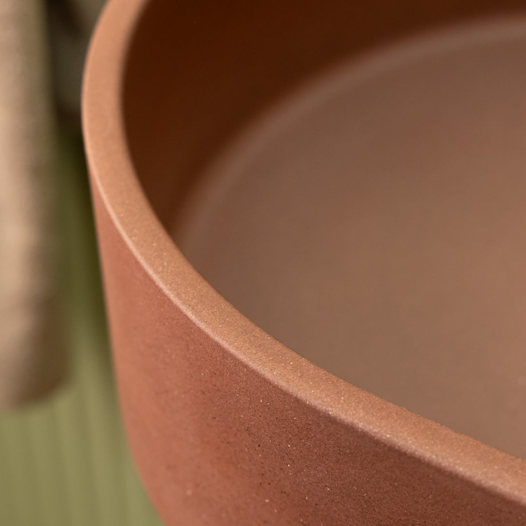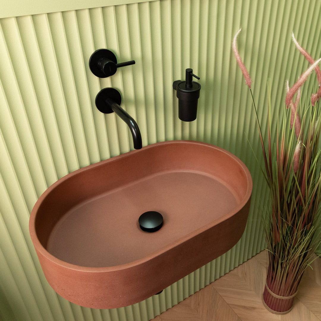 Handgefertigt aus hochleistungsfähigem GFRC (glasfaserverstärktem Beton) vereint dieses ovale Betonwaschbecken Langlebigkeit mit anspruchsvollem Design. Seine glatte, matte Oberfläche und organischen Kurven passen perfekt zu modernen und minimalistischen Innenräumen. Jedes Stück ist ein Unikat, mit subtilen Variationen in Farbton und Textur, die seinen handgefertigten Charakter widerspiegeln. Für eine einfache Montage auf der Arbeitsplatte konzipiert, ist es eine praktische und elegante Wahl für jedes Badezimmer.