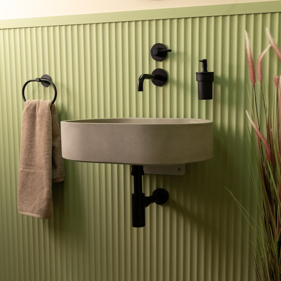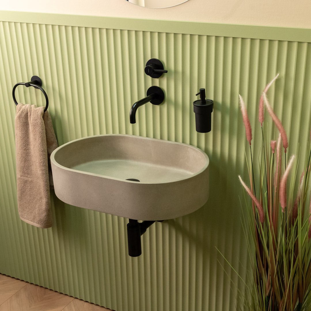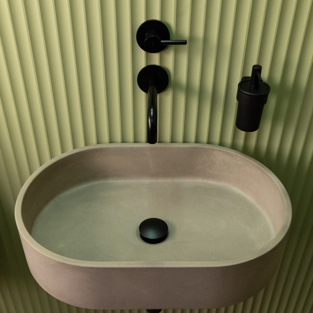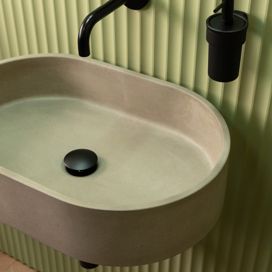 Handgefertigt aus hochleistungsfähigem GFRC (glasfaserverstärktem Beton) vereint dieses ovale Betonwaschbecken Langlebigkeit mit anspruchsvollem Design. Seine glatte, matte Oberfläche und organischen Kurven passen perfekt zu modernen und minimalistischen Innenräumen. Jedes Stück ist ein Unikat, mit subtilen Variationen in Farbton und Textur, die seinen handgefertigten Charakter widerspiegeln. Für eine einfache Montage auf der Arbeitsplatte konzipiert, ist es eine praktische und elegante Wahl für jedes Badezimmer.